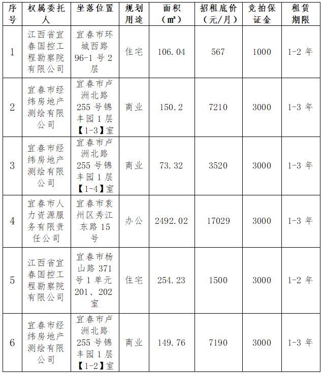公司定于2025年7月28日下午15:30在宜春市國(guó)有資本控股有限公司會(huì)議室面向社會(huì)公開招租:2個(gè)住宅類資產(chǎn)的使用權(quán)、1個(gè)辦公類資產(chǎn)的使用權(quán)、3個(gè)店面類資產(chǎn)的使用權(quán)(資產(chǎn)可以整租也可以分租)?,F(xiàn)將有關(guān)事項(xiàng)公告如下: