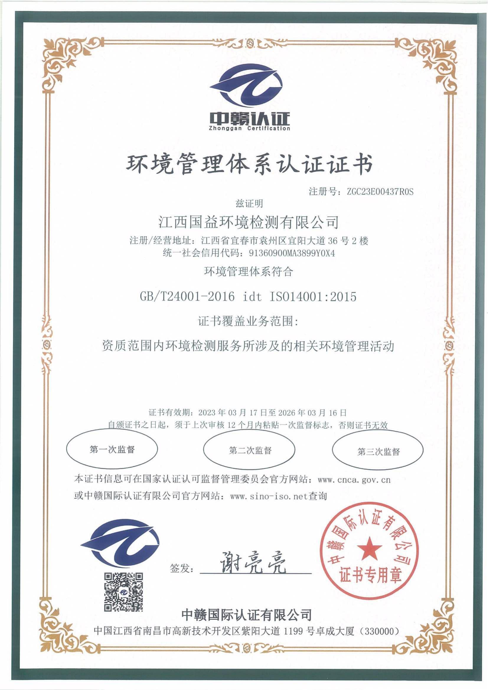首頁 / 專題專欄 / 企業(yè)資質(zhì) / 江西國益環(huán)境檢測有限公司