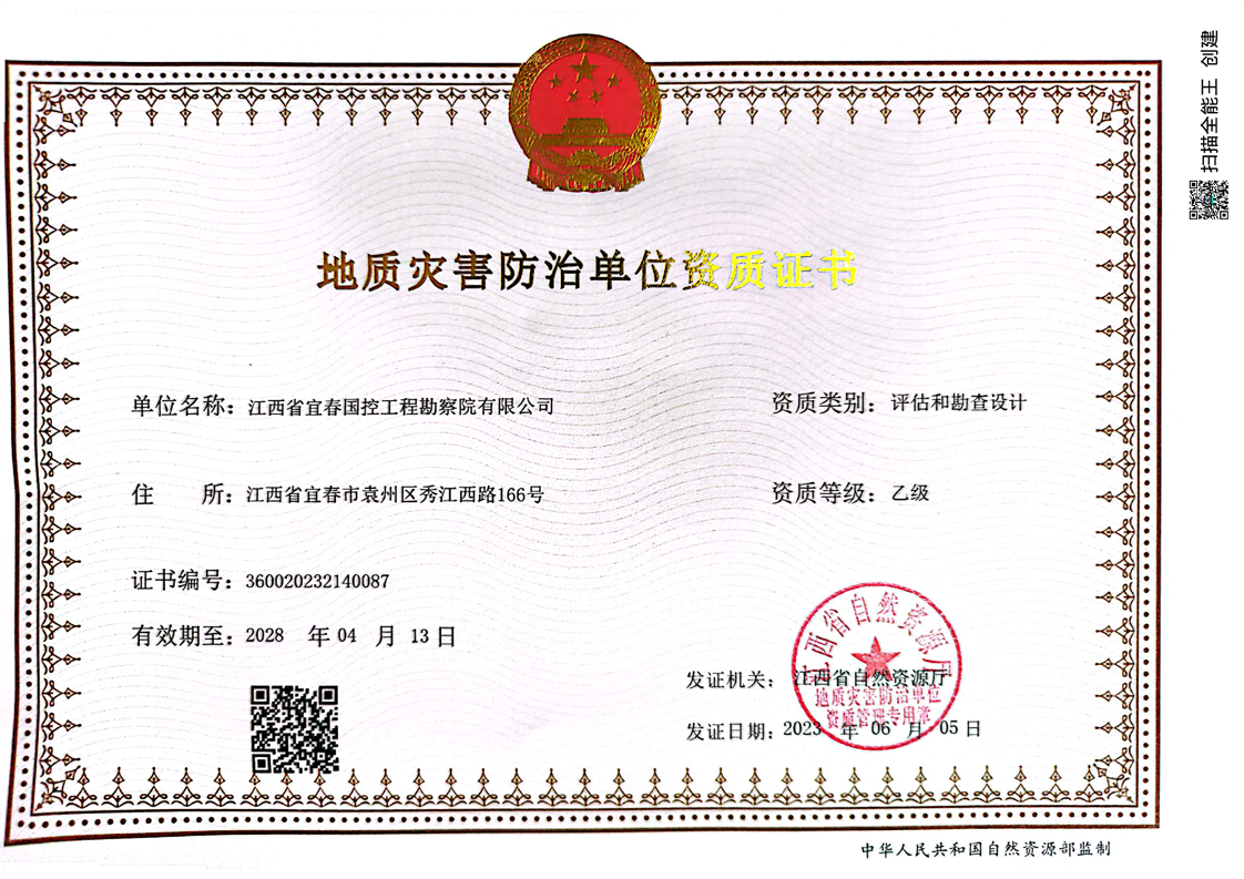 首頁(yè) / 專(zhuān)題專(zhuān)欄 / 企業(yè)資質(zhì) / 江西省宜春國(guó)控工程勘察院有限公司