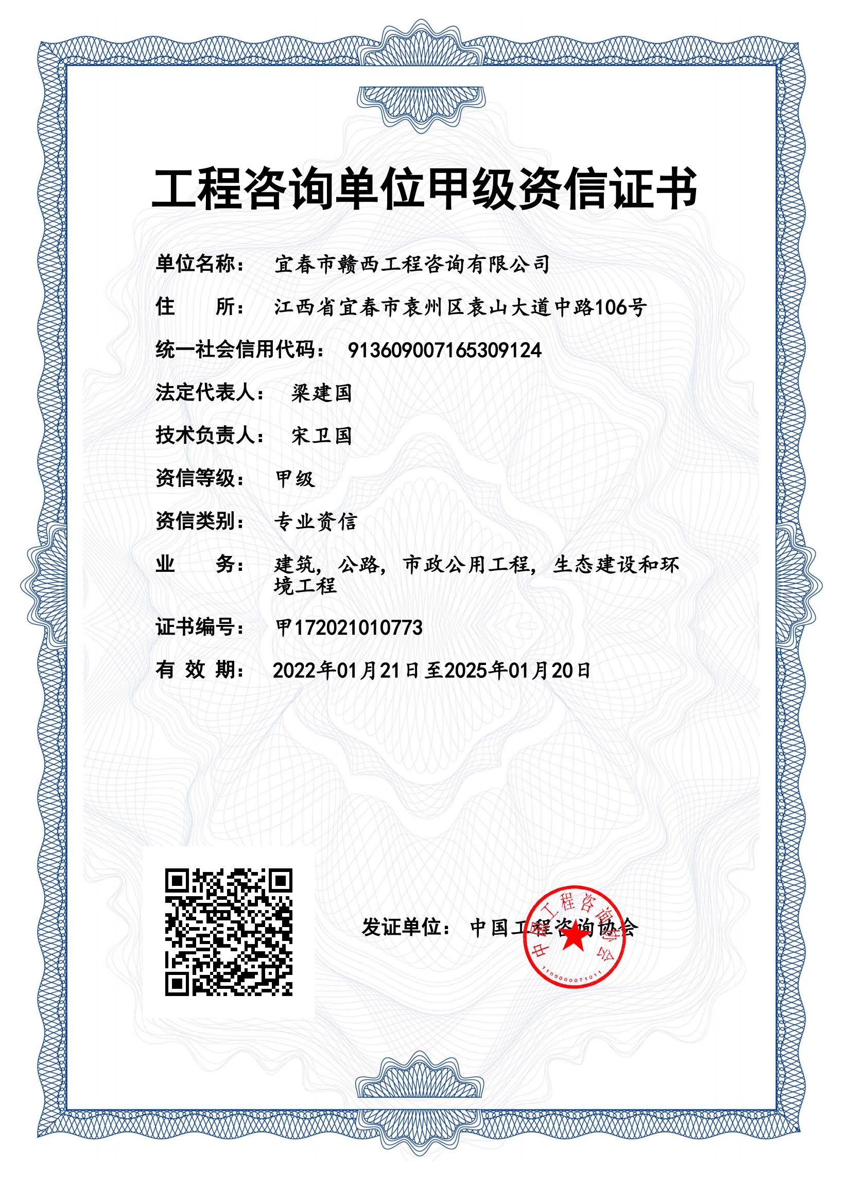 首頁 / 專題專欄 / 企業(yè)資質(zhì) / 宜春市贛西工程咨詢有限公司