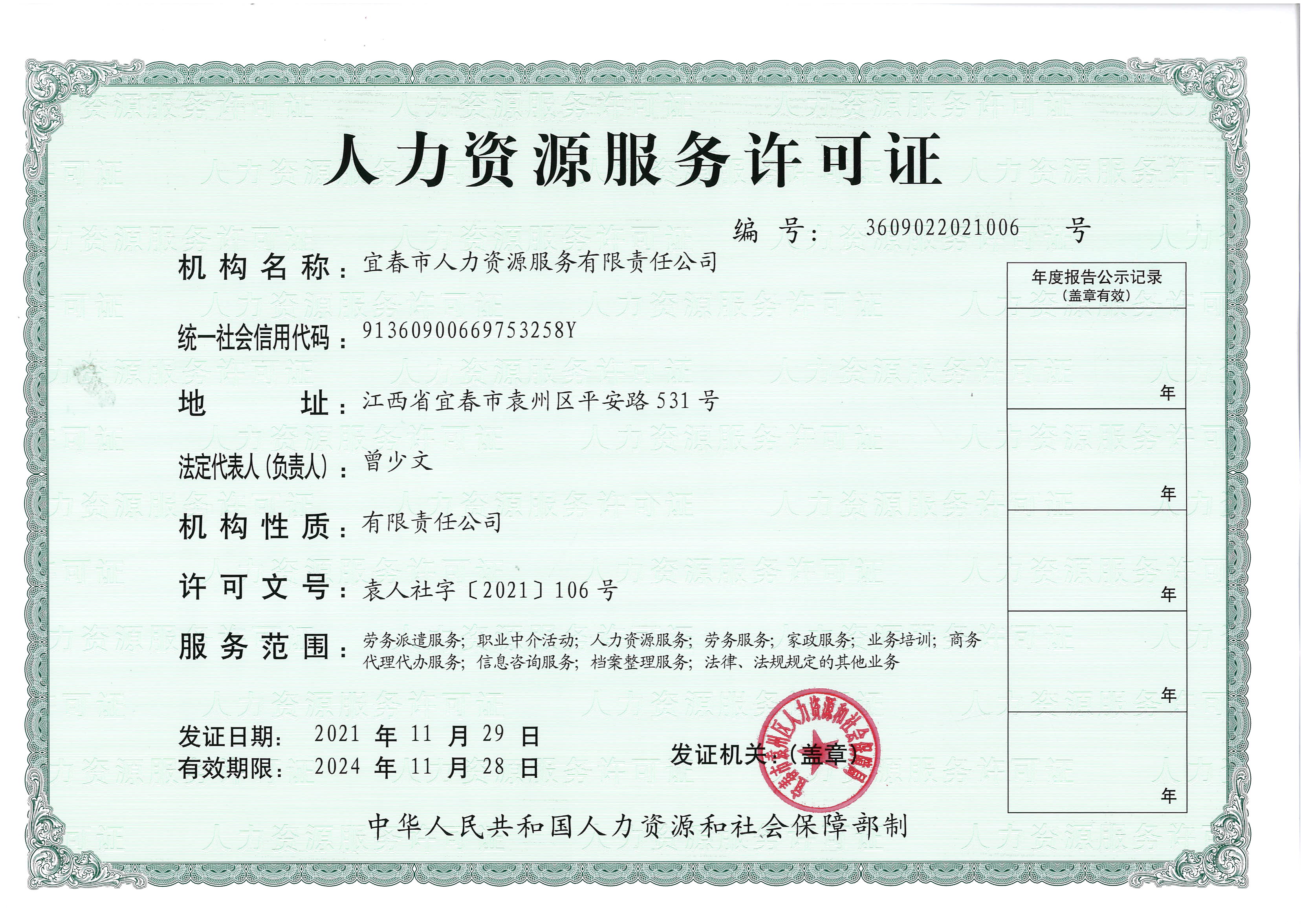 首頁(yè) / 專題專欄 / 企業(yè)資質(zhì) / 宜春市人力資源服務(wù)有限責(zé)任公司