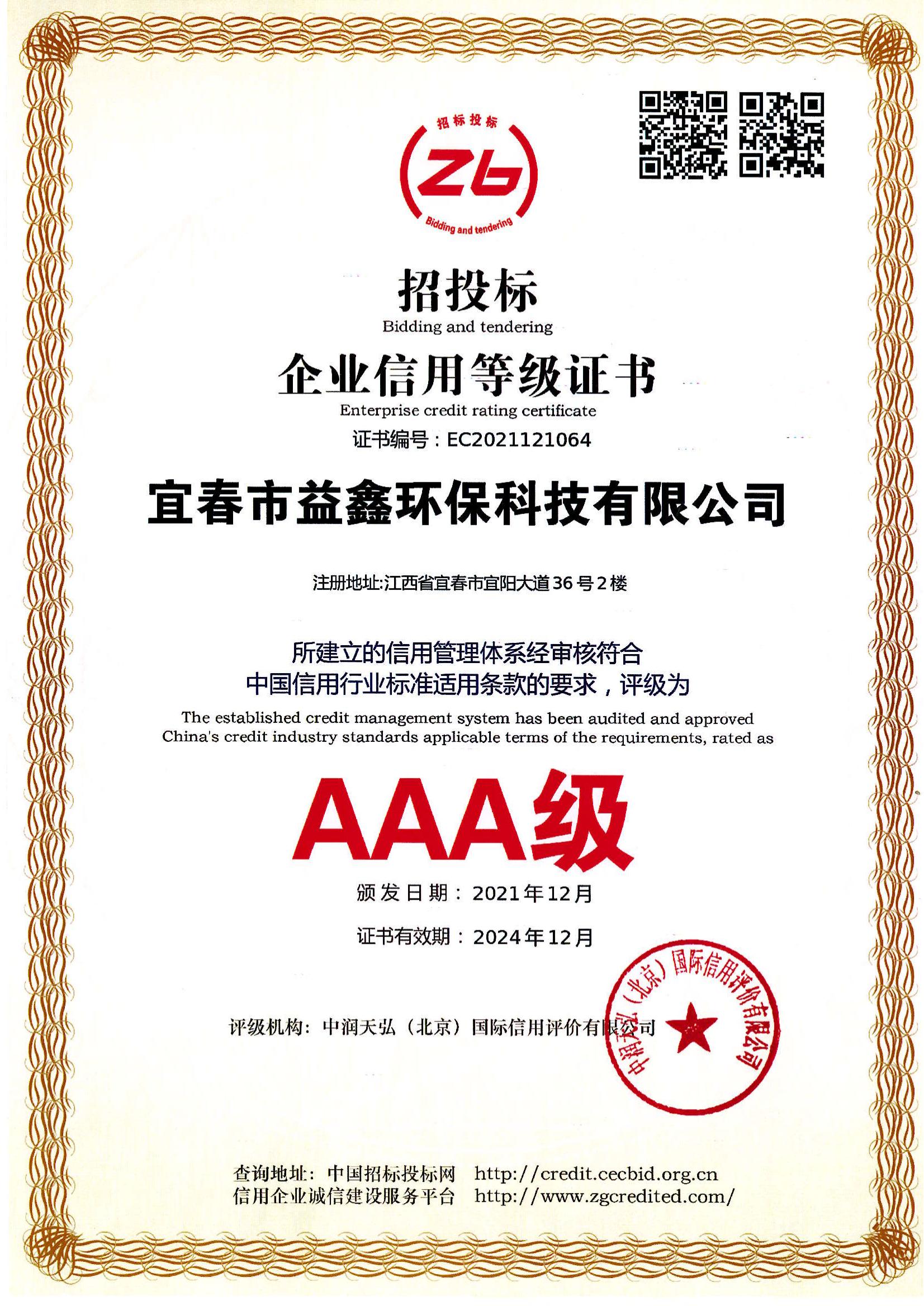AAA級(jí)企業(yè)信用等級(jí)證書(shū)