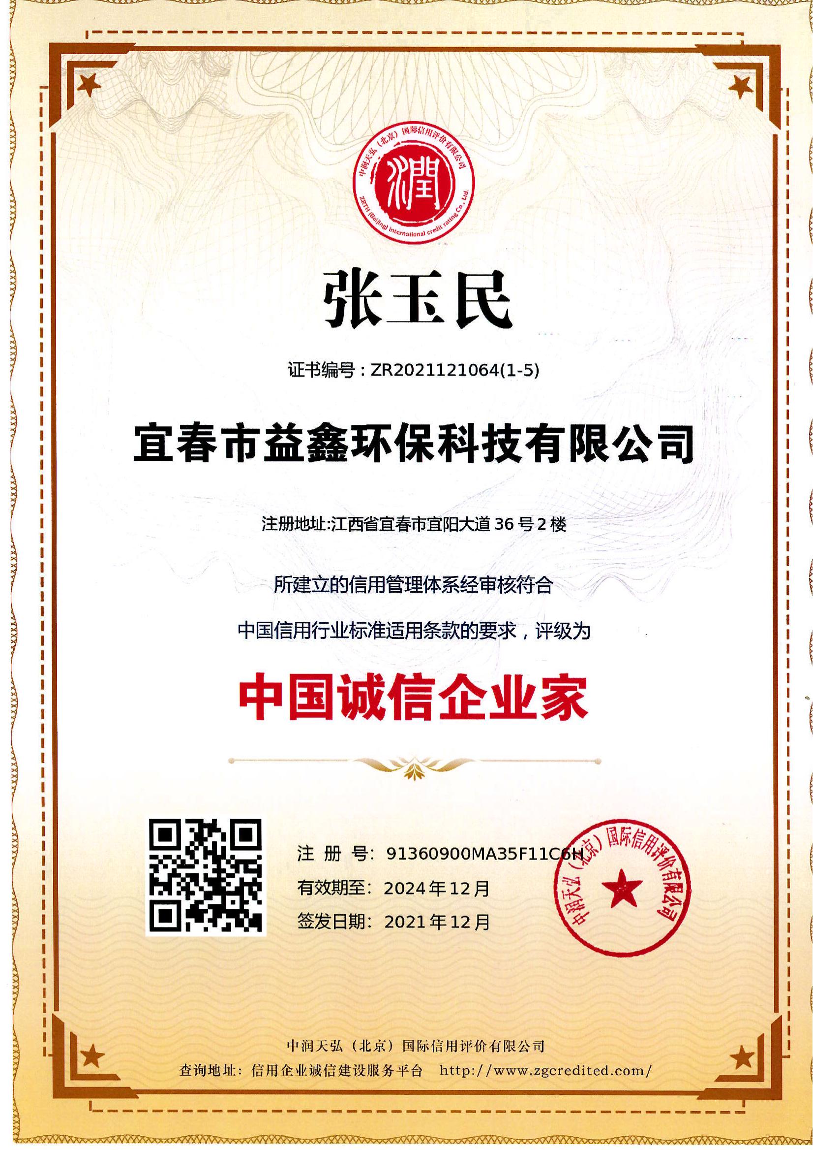 中國(guó)誠(chéng)信企業(yè)家-張玉民