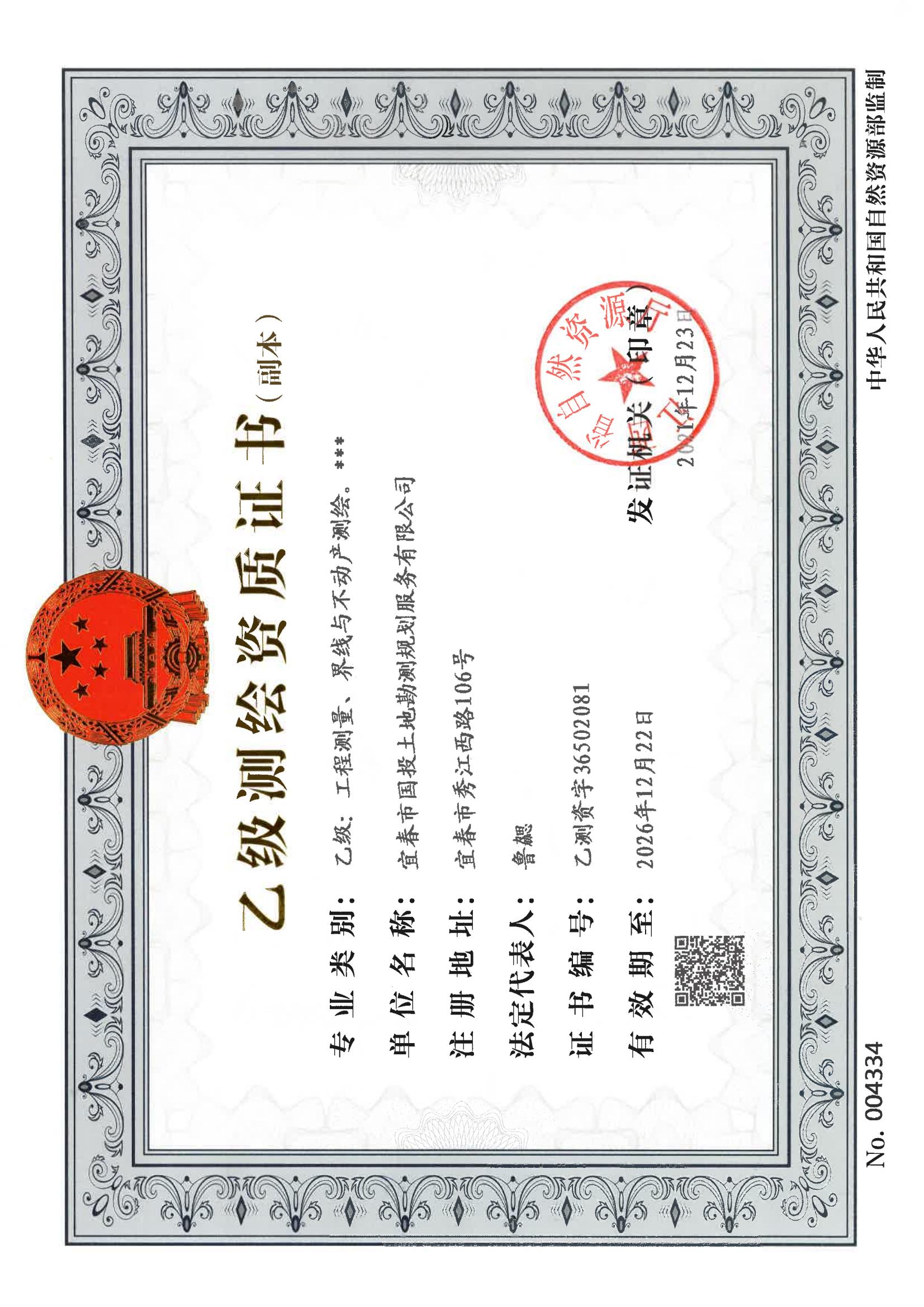 首頁 / 專題專欄 / 企業(yè)資質(zhì) / 宜春市國投土地勘測規(guī)劃服務(wù)有限公司